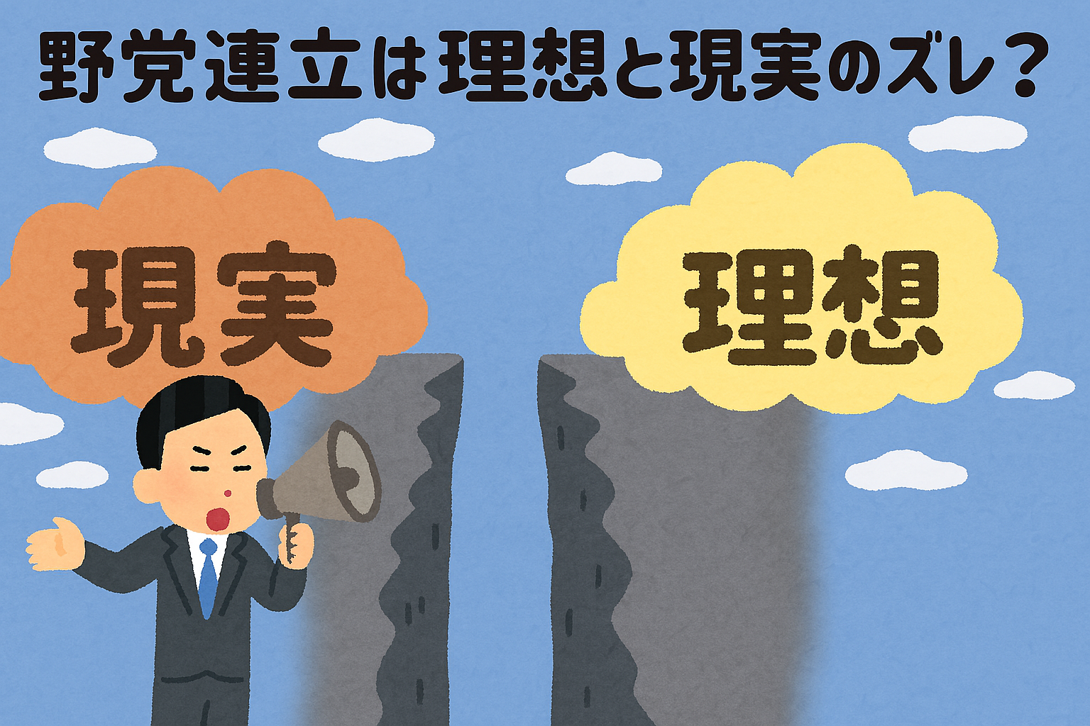 理想を掲げつつも、現実に足を取られる野党共闘の現在地を、少しユーモラスに、データを交えて掘り下げていきます。