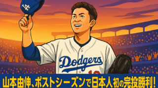 汗と笑いのスポーツ便 【山本由伸】“3億ドルの男”が証明した真価とは? ドジャースの山本由伸が、ついにやってのけた。2025年ポストシーズンで日本人初となる完投勝利を挙げ、アメリカ中を驚かせたのだ。批判され続けた契約金3億ドルも、今や「破格ではなく適正」と評価が一変。その裏には、データが示す“神修正力”と、ファ... 2025.10.16 汗と笑いのスポーツ便